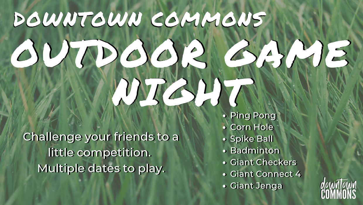Downtown Commons 215 Legion Street, Clarksville, TN, United StatesTake a break from the day and challenge friends, classmates, or even your family to a little outdoor game! Chose from: Ping Pong Corn...Read More »