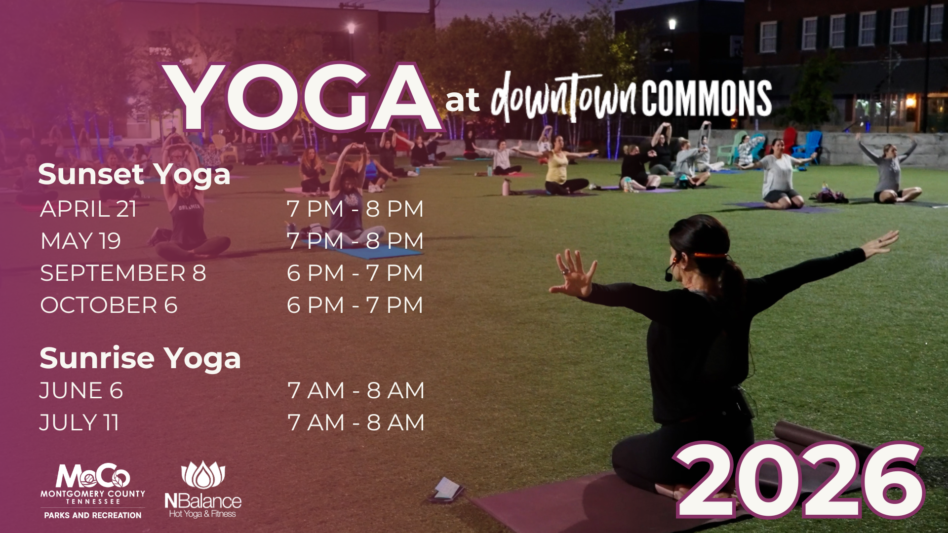 Montgomery County Parks and Recreation is excited to announce the return of Yoga at the Downtown Commons for the 2026 season. This free community program invites residents and visitors alike to enjoy the benefits of yoga in the heart of downtown Clarksville.